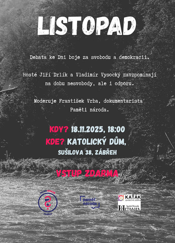 U této příležitosti se 18. listopadu v 18:00 hodin uskuteční v Katolickém domě debata. Hosty této akce budou dokumentarista Paměti národa František Vrba v roli moderátora a pánové Jiří Drlík a Vladimír Vysocký, kteří zavzpomínají na dobu nesvobody, ale i odporu. Vedle vzpomínek a názorů proběhne také diskuse.