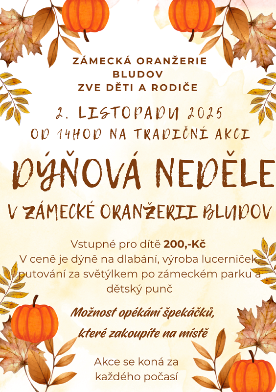 Bludov – Dýňová neděle v Oranžerii Bludov – neděle 2. 11. 2025, 14:00 hodin
