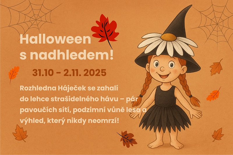 Rozhledna Háječek se od 31. října do 2. listopadu 2025 promění v místo s lehce strašidelnou atmosférou. Návštěvníky čeká podzimní výzdoba s pavoučími sítěmi, vůně lesa a výhled, který nikdy neomrzí.