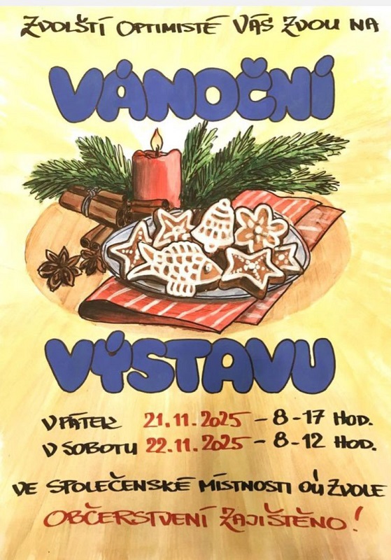 Zvolští optimisté vás zvou na vánoční výstavu, která se uskuteční ve společenské místnosti obecního úřadu ve Zvoli. V pátek 21. listopadu je výstava otevřená od 8:00 do 17:00 hodin, v sobotu 22. listopadu od 8:00 do 12:00 hodin. Občerstvení je zajištěno.
